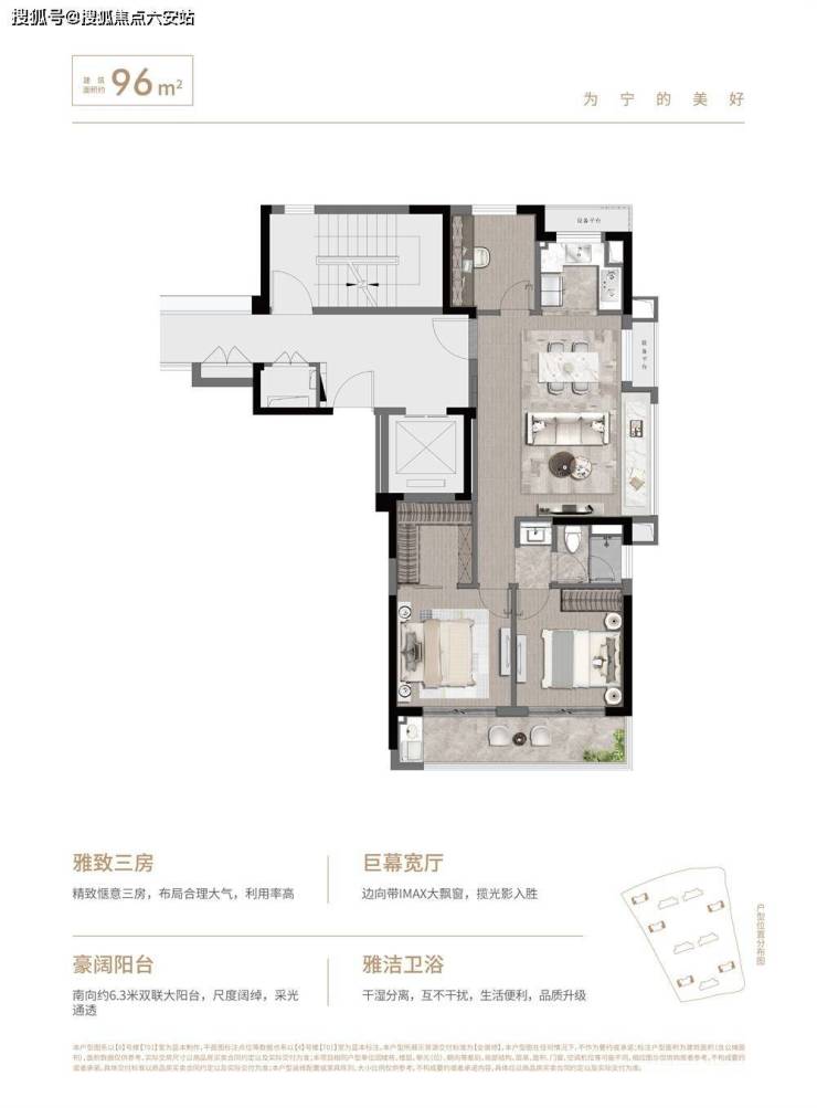 住宅面积:96㎡/106㎡/130㎡全装准现房,精装标准达2500-3000元/㎡,标配日立中央空调、兰舍新风系统、科勒卫浴。