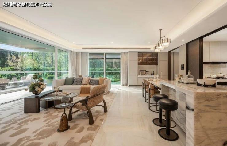 项目采用三段式立面设计:基座以铝板与石材铺陈,主体以大面积玻璃搭配铝板,局部辅以涂料,顶部 “云冠” 造型简洁收束,整体轮廓如同金色的“油画框”,线条利落,材质的质感自然流露,不仅显著提升了建筑美感,而且相较于限价时代常用的真石漆材质,耐用性与品质感都得到了极大的提升。室内空间则在餐客厅通铺纯天然大理石,卫生间台盆、厨房台盆也均采用纯大理石岩板,既增强了项目品质感,也兼顾了实用耐用性。潮语臻境府✅杭州潮语臻境府售楼热线:☎ 400 832 8823「售楼处」☎〢🔻已认证〢◆🔻