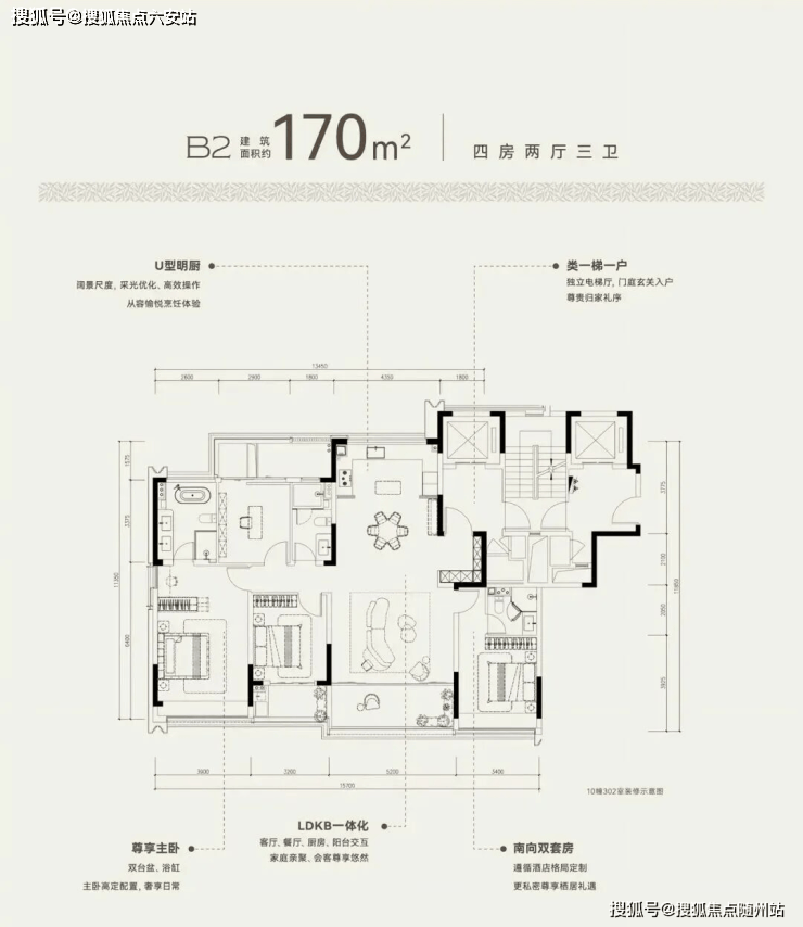 满足5房空间后,可能客户会觉得客厅不够气派,我看了下户型格局。