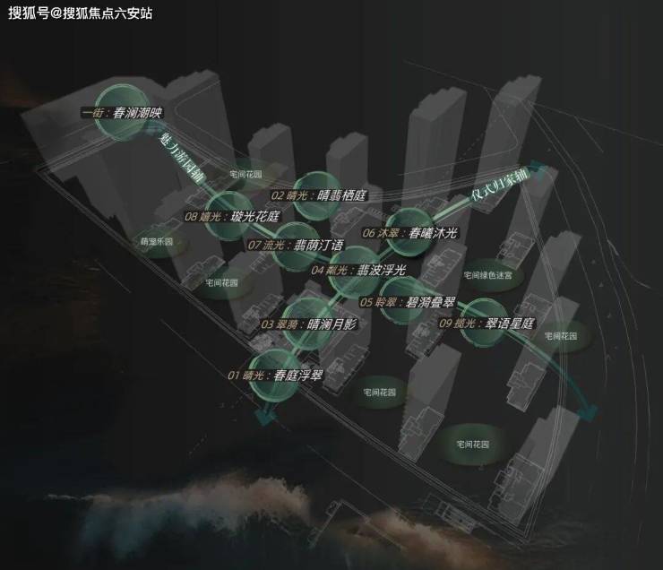 同时洞察改善置业所需,将“家”装不下的休闲、社交、成长、健康等功能,延伸至园林之中,构建“两轴一街九境N组团”的丰富场景。从主入口至森氧剧场,让园林不止于观赏,更成为连接自然、邻里与自我的超链接。