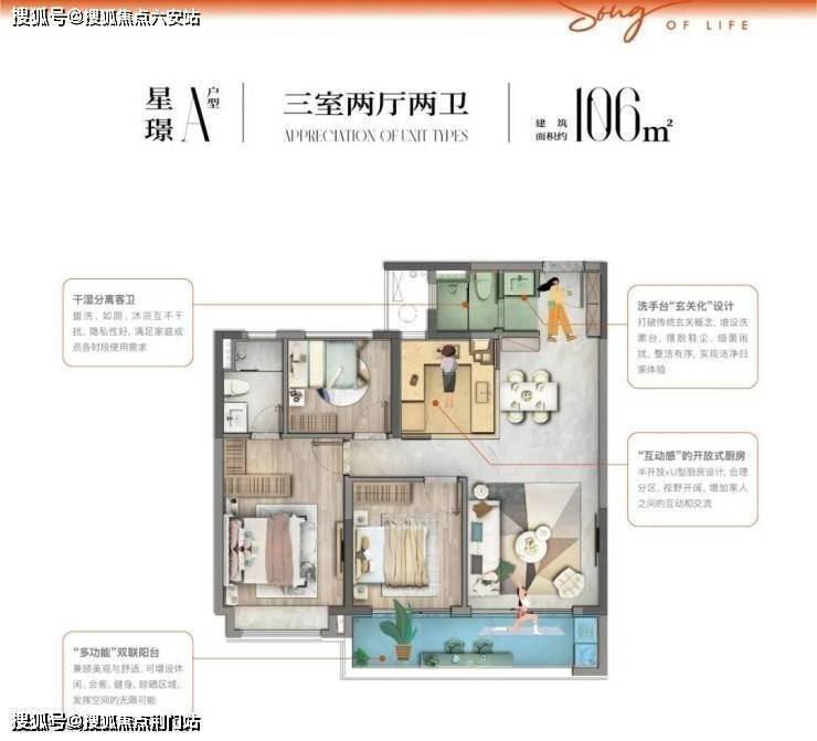 在户型设计方面则展现了“效率美学”:建面约106㎡户型实现约6.7米南向双联阳台,采用LDKB一体化设计,获得超越面积的空间感;建面约133㎡户型独创“800库”玄关系统,将露营装备、运动器械等大件物品收纳难题优雅化解。