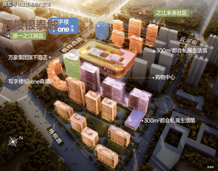 以C-ONE森湾、T-ONE天湾两大地标写字楼,汲取了北京银泰中心、成都银泰中心的超甲级写字楼开发经验,将以300-2500㎡总部办公空间规划,在约52万方综合体的底盘之上,构建约10.6万方综合体总部办公集群,为之江企业总部提供更多元的选择,营造更具国际感的商务办公体验。