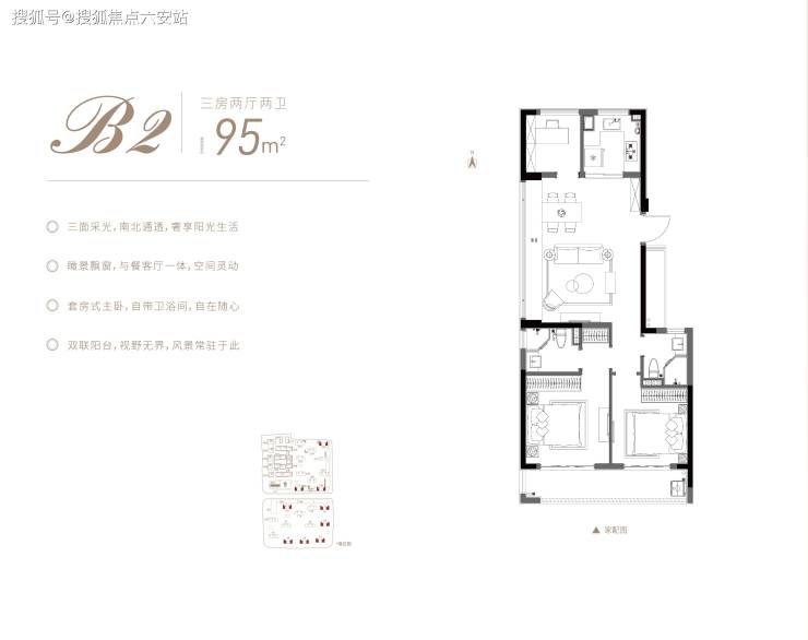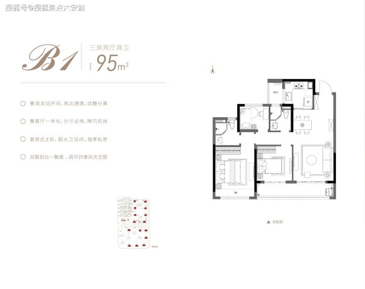 85㎡三房紧凑实用,适配刚需首置;95㎡三房三开间朝南,主卧套房设计,兼顾舒适与实用;117㎡四房功能分区明确,满足多孩或三代同堂需求。