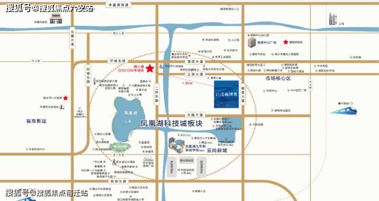 云尚璟苑项目距离云尚新城500米。现有在售楼盘距离最近的一个项目,已明确凤凰湖九年制教育用地及大型商业用地