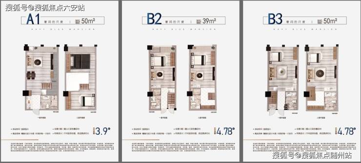 - **B幢**:4.78米双钥匙LOFT,4梯34户,总14层,主力39㎡(均价2.1万/㎡,总价80万起)