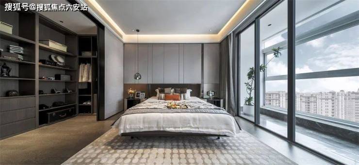 卧室自是最舒适宁静的私密空间。在风格都市现代的床上铺陈松软舒适的床品,听一曲蓝调爵士,深陷温柔的梦想,编织最绚烂的美好梦境。梦醒时分,踱步窗外阳台,依靠在吧凳上吸取最新鲜的清晨的气息,享受属于都市不可多得的自然与恬静,回首,是最爱的人的笑颜,也许便是人世间最幸福美好的境界。