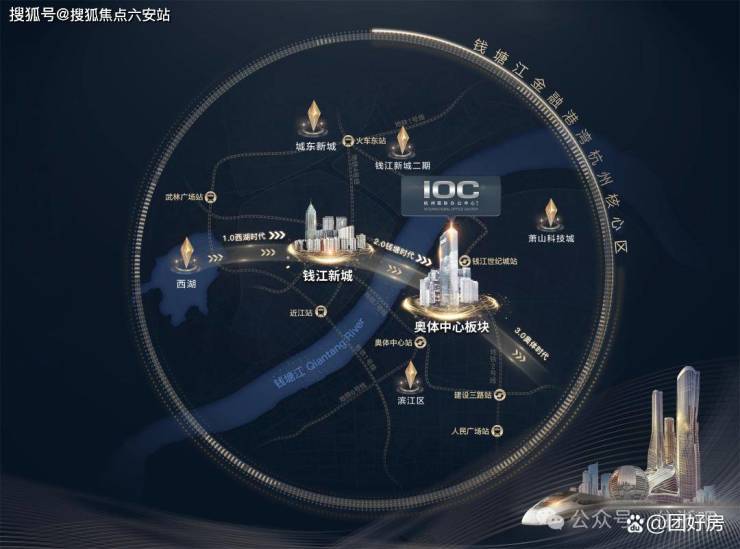 IOC潮鸿占据奥体核心区“轴心C位”,北接钱江新城(亚运村核心区),南望钱塘江景(世界级自然景观),东临奥体博览城(国际赛事中心),西靠西溪湿地(城市绿肺),形成“四区交汇”战略高地。这种得天独厚的区位优势,使其成为杭州城市发展的“价值增长极”与“资本避险港”。