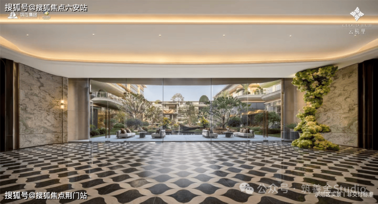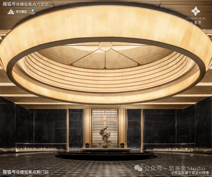 小区大门以“云扉初开”为灵感,打造具有仪式感的礼仪入口。宽约66米、高约8.6米的恢弘门庭,与酒店式归家大堂共同构筑,打造出极具仪式感的序厅,瞬间开启归家的尊崇心境。