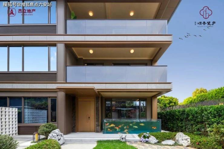 四面铝板+三层lowe玻璃立面, 搭配进口爱马仕灰和蓝眼睛石材,与坡屋顶的结合,沿袭传统宋式山水美学,写意现代东方气韵风华,三进二庭五园的中式传统轴线布局,两轴九景四时的极致意境生活。景观与空间相互渗透交融,行走至其间形成视觉上的联系与流动感,步移景异, 悠闲和缓。