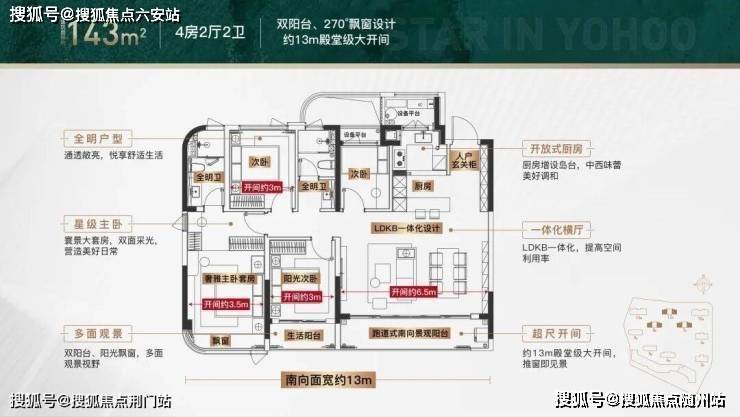 约13米南向面宽+约6.5米阳台,约27㎡LDKB一体洄游社交场,