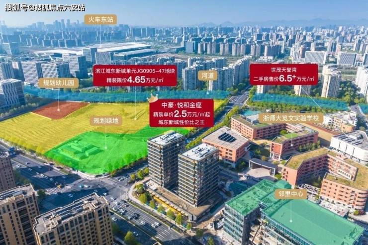 交通配套:紧邻杭州火车东站,距离仅约800米,周边有地铁1号线、4号线、6号线、8号线(规划)等,还有一条在建的机场快线,交通便捷。