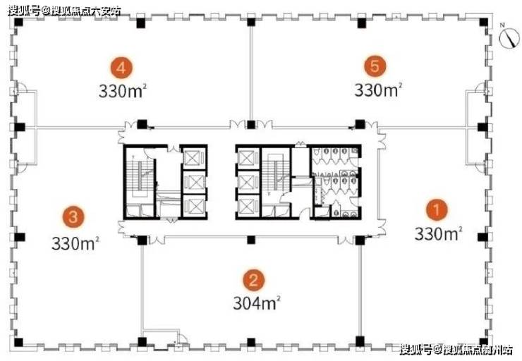 - **标准层**:建面约1610㎡,层高3.8米,得房率78%,支持整层租赁或分割为330㎡灵活办公空间。