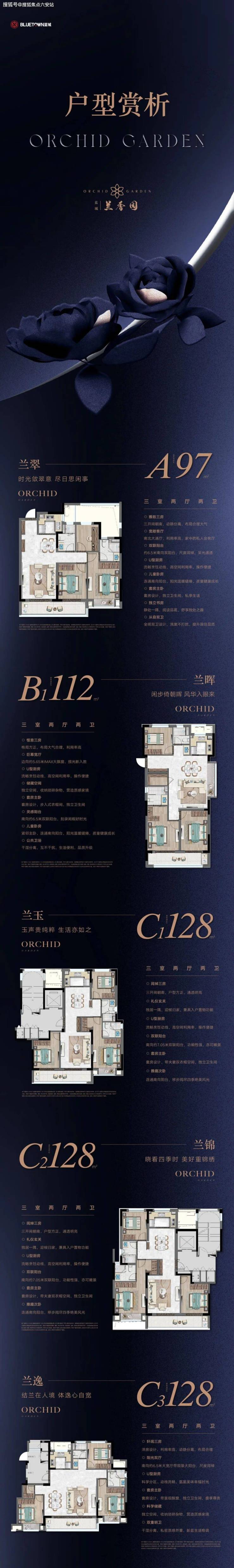 蓝城·兰香园,建筑面积约16万方高品质园区,以小高层为主力,户型面积覆盖了97-258㎡,主力建面约139-258㎡的大平层产品,构建都市里的高端低密奢华园。