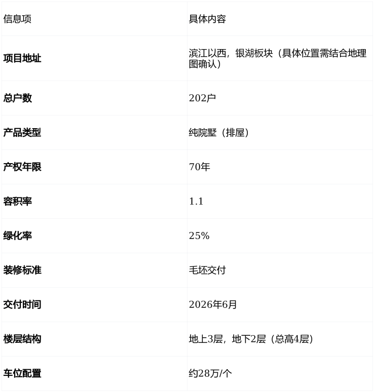 滨江西板块罕见纯排屋社区,万达旁、双地铁,兼具城市便利与低密生活。
