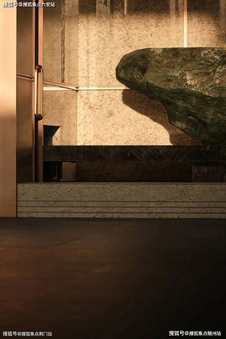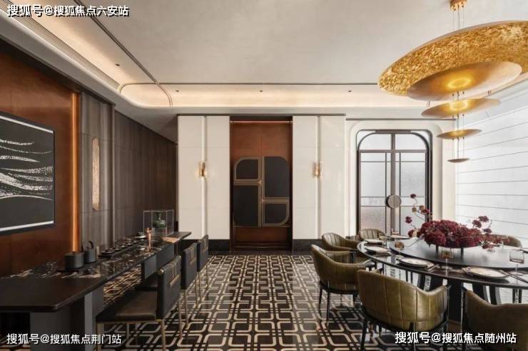 为了实现尊贵雅致的归家仪式感,打造“五境归家”动线,约37米延展面的府院式大门、约4米挑檐星空顶及尊贵酒店式落客和parda绿奢石,勾勒出每一步皆静奢的归家质感。而在入户电梯厅,经典纹样的瓷砖拼花,搭配雪山银狐岩板和精美壁灯,让业主的每次回家都被温馨氛围包裹。