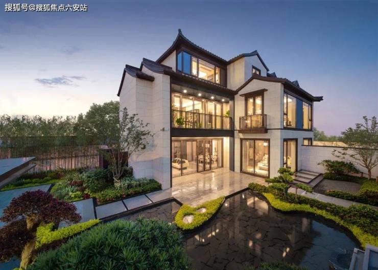 中式院落的立面造型是在徽派基础上的当代表达,将古典建筑中粉墙黛瓦与自然景观之间形成色彩搭配与对比,结合现代风格建筑,打造形神兼备、有时代气息的新中式建筑。