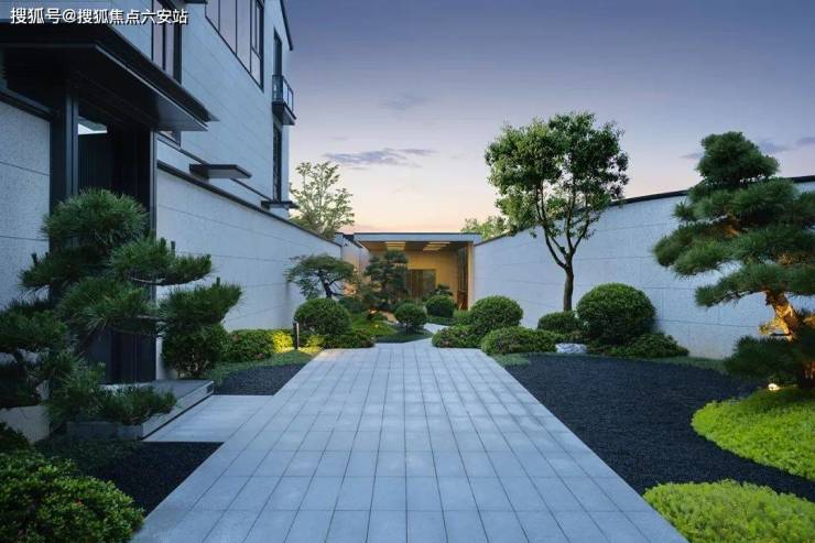 这幅图像展示了一个匠心独运的建筑项目,它的外观采用了淡雅的浅色石材和日式合瓦屋面的设计,同时巧妙地融入了深色金属构件,形成了冷暖色调的和谐交融。这种搭配不仅彰显出典雅简约的美感,更展现出强烈的时代气息。在建筑造型和空间布局上,该项目巧妙地运用了歇山、硬山和小披檐等传统手法,为整个建筑增添了无穷的魅力。