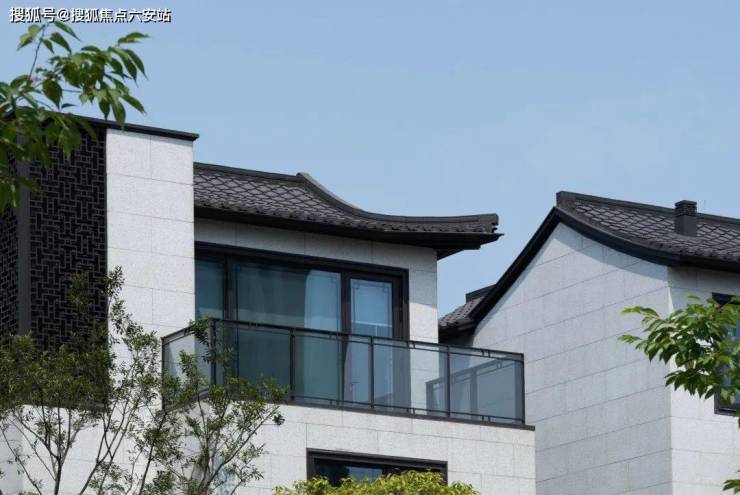 院落的立面造型是在徽派基础上的当代表达,将古典建筑中粉墙黛瓦与自然景观之间形成色彩搭配与对比,结合现代风格建筑,打造形神兼备、有时代气息的新中式建筑。