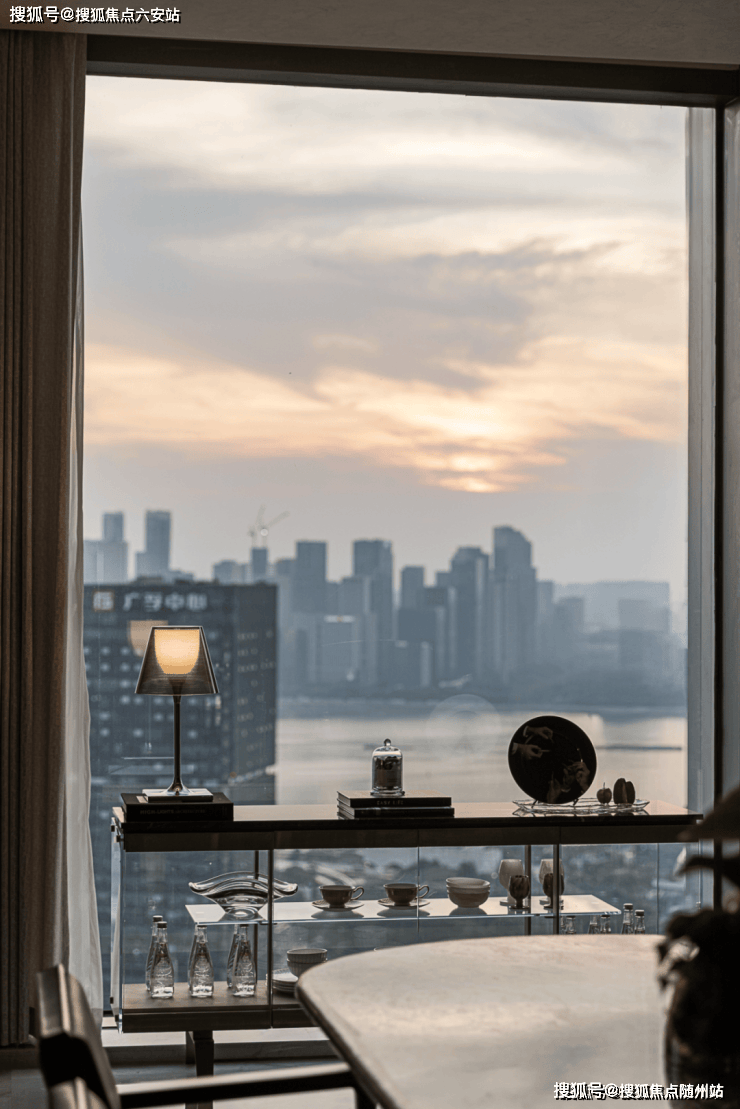 客餐厅作为核心中轴,形成一个多重功能的复合场域。落地窗将钱塘江的天际线引入室内,呈现出开合自如的呼吸感。