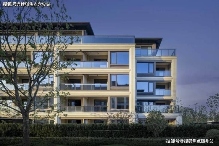 以**0.38超低容积率**打造五层低密洋房,建筑采用现代新亚洲风格,米白石材与浅灰Low-E玻璃立面,融入古典三段式设计,兼具东方韵味与现代质感。