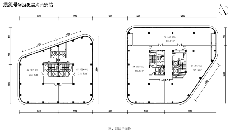 4幢独栋写字楼平面图(1-2层与3幢部分连接)