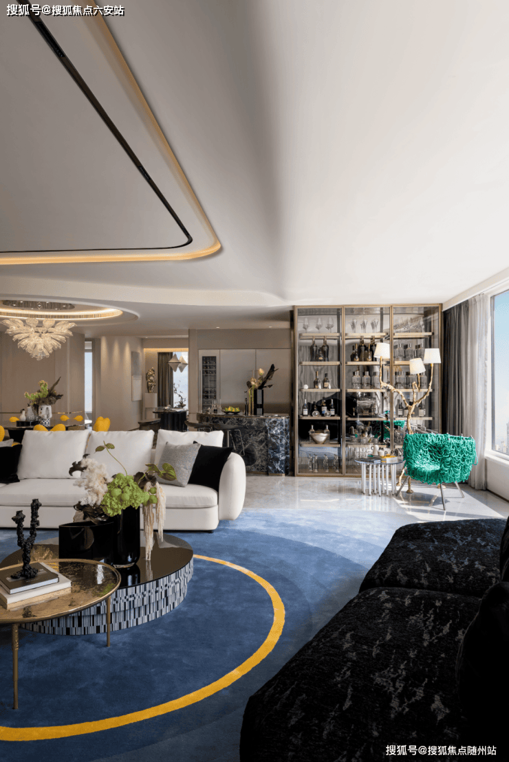奢石铺装:意大利芬迪白大理石、普拉达绿石材吧台,单套装修成本超千万