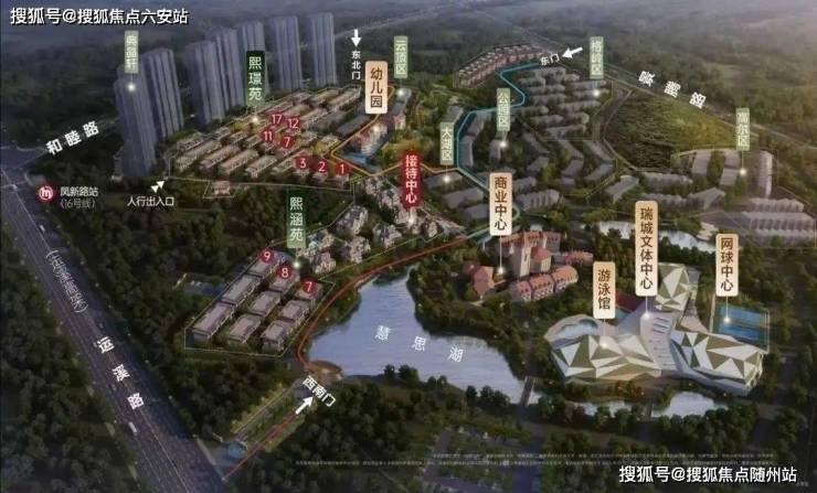 项目总占地500亩,其中300亩为住宅用地,规划6个低密组团及1个高层组团,共计1600户家庭已全部建成交付;另200亩土地打造为旅游配套,涵盖瑞城体育文化中心、希尔广场、10000㎡慧思湖等休闲空间,形成居住与生态交融的闭环生态系统。