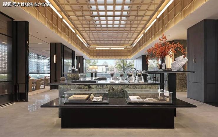 为满足当代消费者更关注的情绪价值,保利发展控股让项目的场景力充分演变成了产品力,在宁波汀澜瑧悦的六重瑧境之外,处处皆是充满烟火气的放空自留地。比如开放式吧台区域一进前院,吧台与厅堂之间围合成“留白”式的离散空间,有更多现代生活场景形成的可能性。光从吧台缝隙中穿透过来,这样一种近乎虚无的元素,和一种以金属质地极其强化的元素,产生了戏剧性的碰撞。