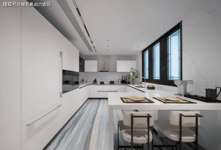 高奢材质炼金术:大量意大利蓝金沙大理石铺陈地面,瑞士瑞族V-ZUG衣物护理管家,瑞族 厨房电器, 意大利Molteni&C旗下的殿堂级现代奢华橱柜品牌ARMANI/DADA,Poliform全屋定制柜体实现毫米级拼缝,将集体出现在私宅空间。