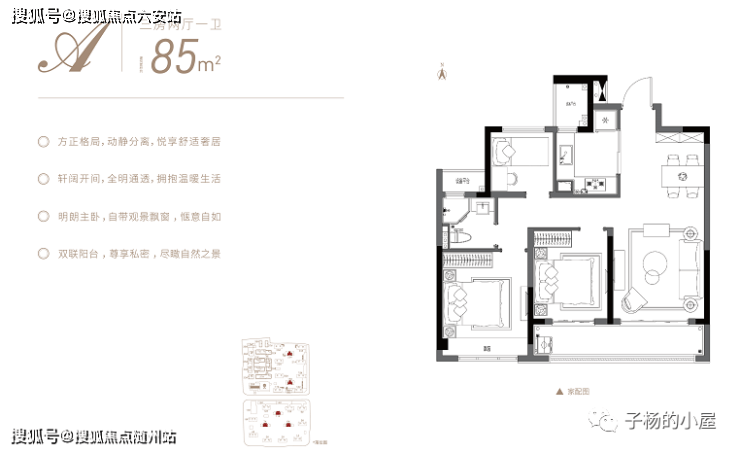 关键是,户型的公区客餐厅与私区卧室之间,没有过多的过道空间,这让整体户型更有余力去把生活的纯粹放大。