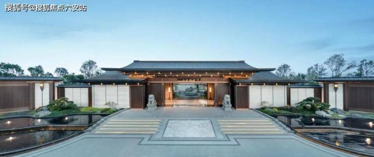 比如这一次的“建发式”大门一如既往,南北地块做了双大门设计,门头宽度达到约61米(含景墙)。入户做足了仪式感:重檐悬山式门楼、芝麻黑石材地雕、“鱼跃龙门”御道,两侧伫立着石狮、影壁、跌水、绿岛......还有两株精挑细选寓意“财富与健康”的罗汉松。