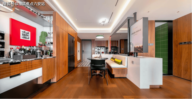 建筑面积约99平方米的创意样板间,半开放式的餐厨设计,打破了传统“一人做饭,全家等待”的局限,畅通了家庭交流空间。