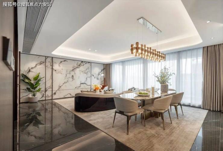 第二:整体布局有“仪式感”,现代审美与高级生活呼应。第一眼,近80米超大尺度主入口,以意大利普拉达绿奢石为基座,镶嵌千年罗汉松阵列,形成威严的森系迎宾序列,门庭的恢弘气场扑面而来。