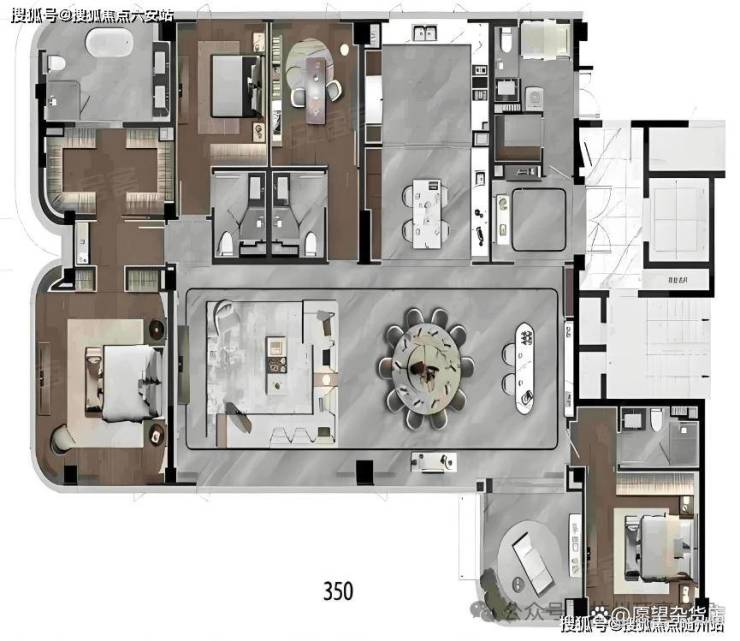 产品类型:建面约330 - 385㎡围合式大平层