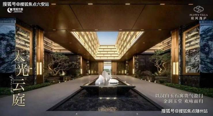 以“引水入园”理念打造中央水轴,融合溪涧、瀑布等景观;绿化率35%,复刻“九进归家”礼序。