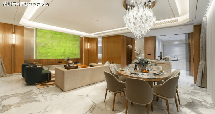 一层“宴·家族场域”:奢阔横厅面宽达7.2米,连接南向私享庭院,无论是家庭聚餐还是招待亲友都极为气派;U型厨房设计预留双开门冰箱位与中岛台,烹饪动线合理,满足高端烹饪需求;长辈房设在一层,避免上下楼梯不便,配备独立卫浴与观景飘窗,兼顾实用性与舒适性。
