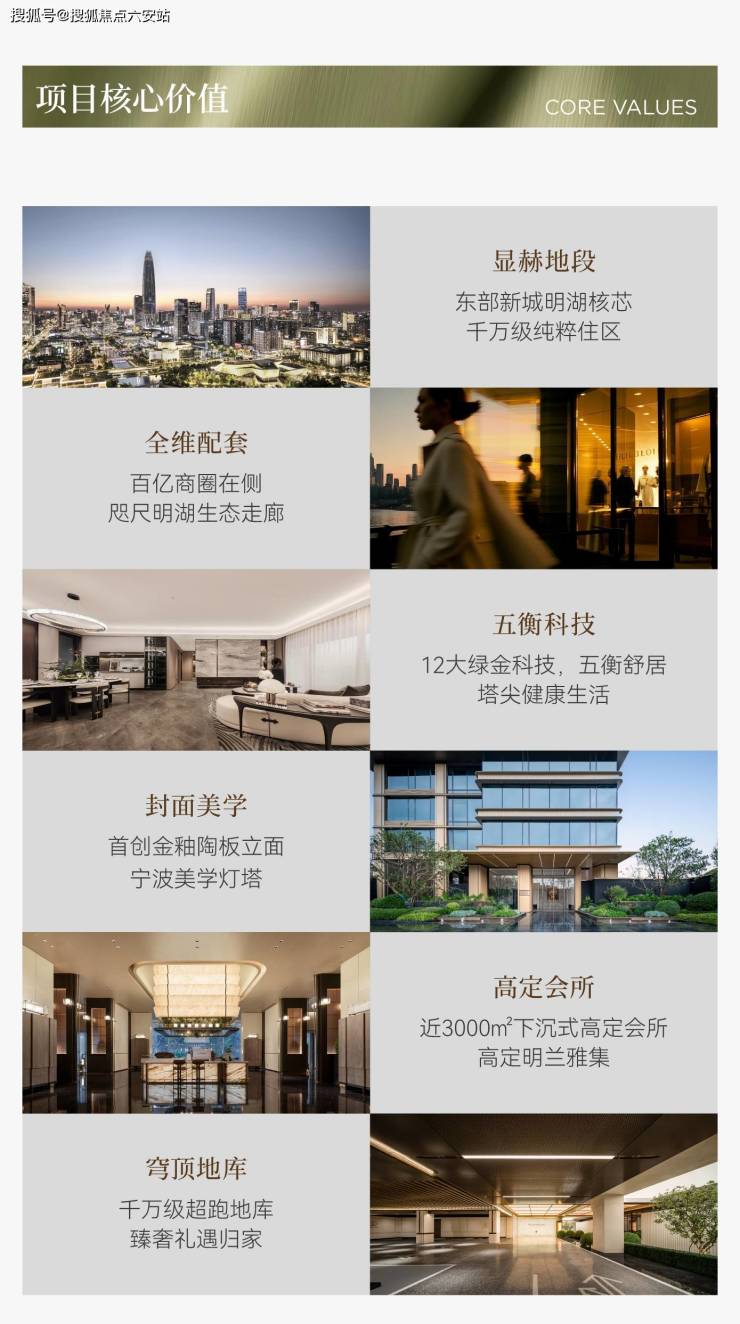 顶级立面与景观:采用金釉陶板立面和无边框幕墙设计,提升建筑颜值的同时让建筑更显壮阔。拥有约4.5万方的超级景观,是镶嵌在明湖上的珍稀绿宝石,也是宁波罕见的都心绿洲。社区大门设计独特,西门采用安缦风格,南门则是宝格丽酒店大堂风,彰显尊贵身份。