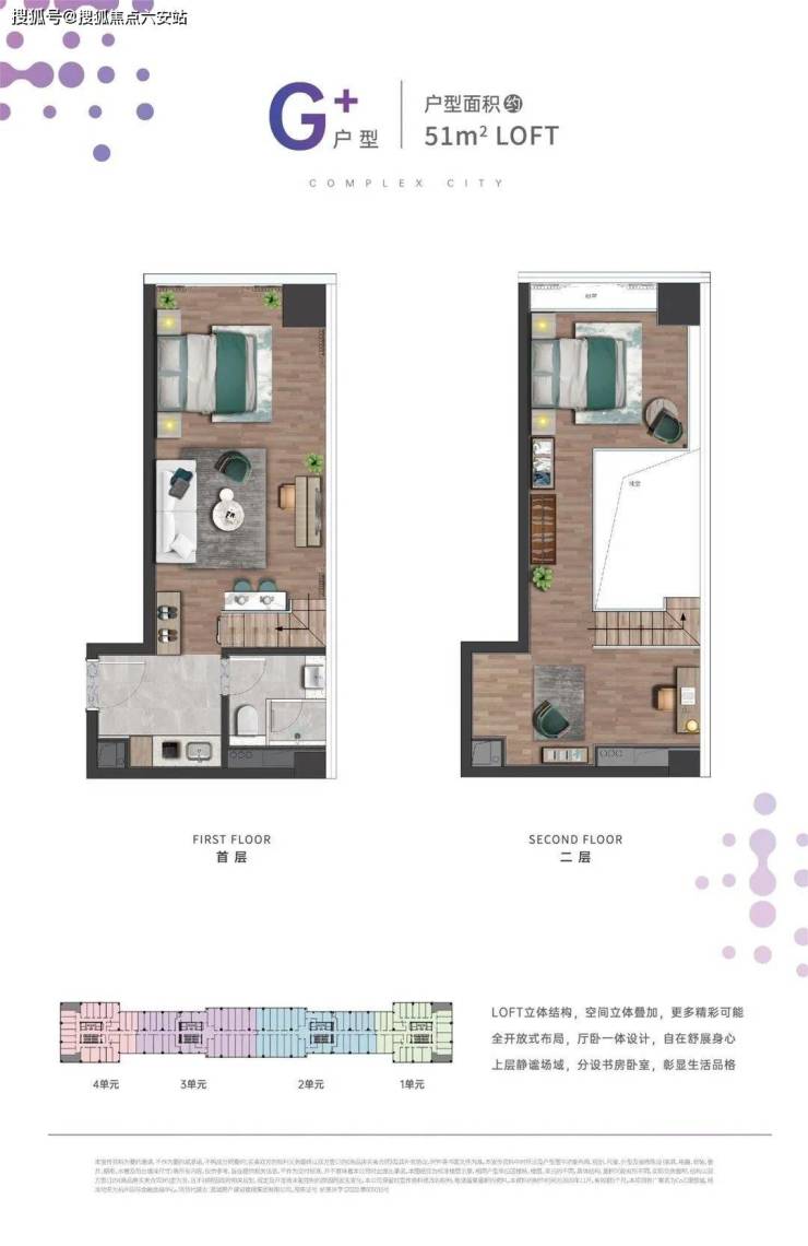29-51㎡精装空间:平层层高3.3米,loft层高4.2米,买一层得两层,得房率超200%