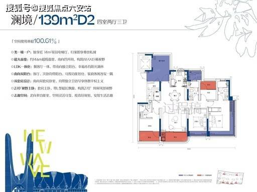 165-171㎡ 四房三卫(大平层):一线河景,宽幕阳台,均价约 4.98 万 /㎡