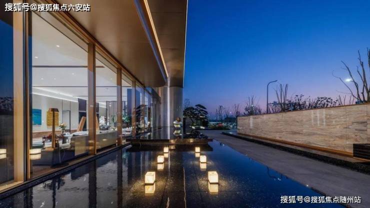 二境——揽潮映月:入口水景内庭院,塑造抽象的起伏浪潮与优雅的弦月形态,如同一幅雕塑作品,展现宛若美术馆的宁静而高雅格调。