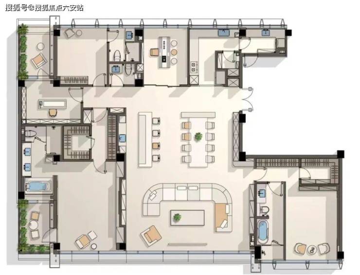 1、上海汤臣一品同款设计师出品,整体面宽21米左右,赠送南北露台,双套房双浴缸设计,主卧面积60㎡,5房设计,装标1万