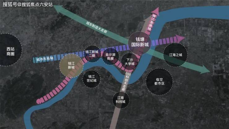 钱塘之门坐落于钱塘国际新城核心区域,坐享“拥江发展”与“城市东拓”的交汇处。钱塘国际新城对标的是杭州的钱江新城,这里处于G60科创智造大走廊的关键节点,是杭州东部门户。