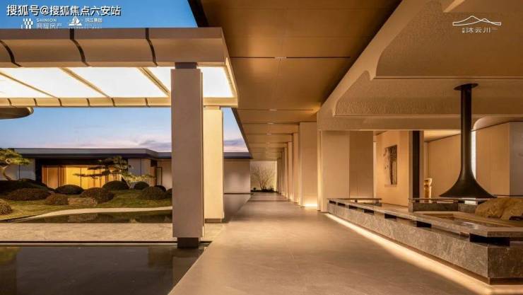 还有更符合沙龙场景的围炉式户外会客,以杉本博司闻鸟庵为灵感的玻璃冥想亭,以海棠悦府度假酒店为灵感的下沉行政走廊、瑜伽室、书香阅读区等等,日后你在小区里的生活也太丰富了吧。