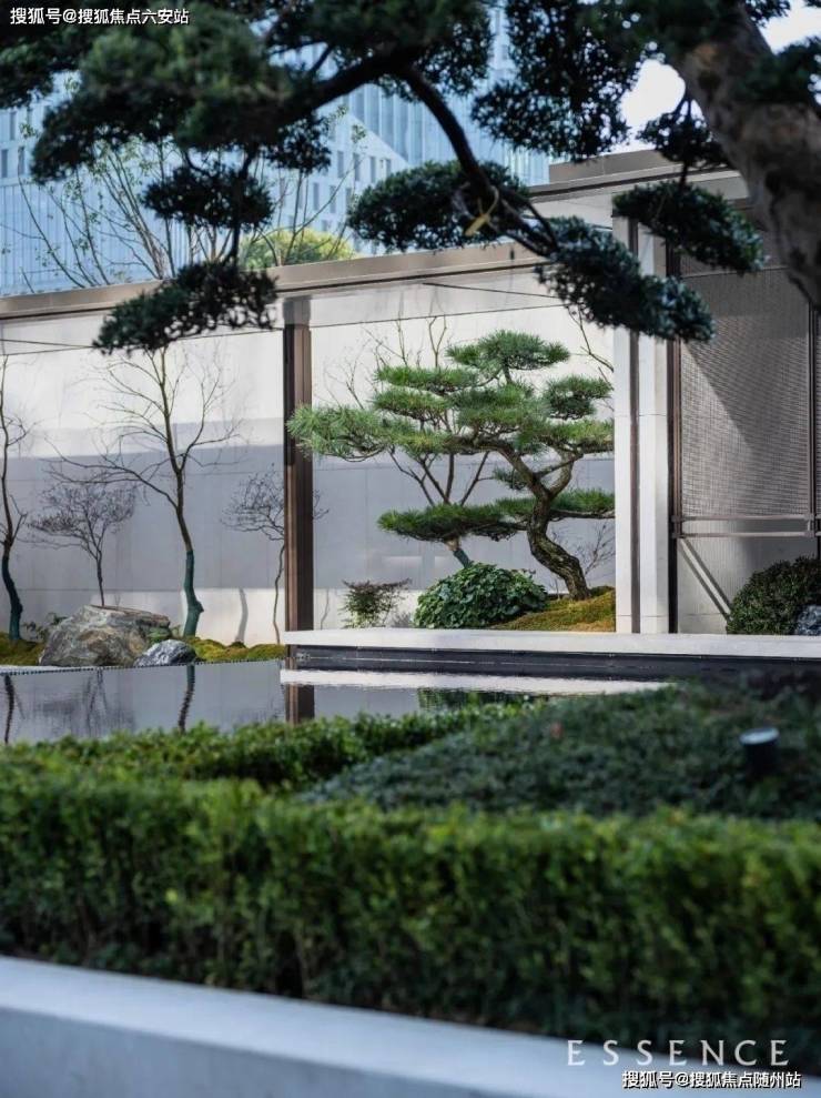 社区园林以现代手法诠释传统山水美学,打造步移景异、富有禅意与层次感的景观空间。