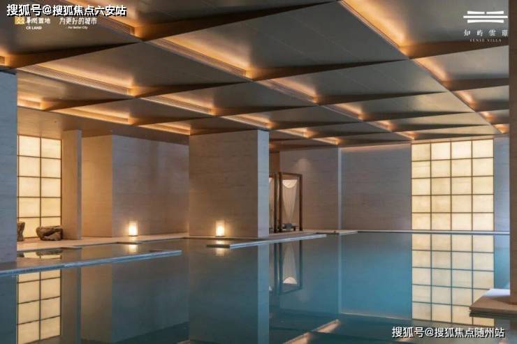 大尺度落地窗,与下沉庭院无缝连接,将窗外的山石、松影与飞瀑引入室内。每一次畅游,仿佛流动于山水长卷之中。整个泳池空间全部采用“香槟金”马赛克铺装,加上度假风情的休憩区,以及疗愈按摩系统,酒店式尊崇的舒适感扑面而来。