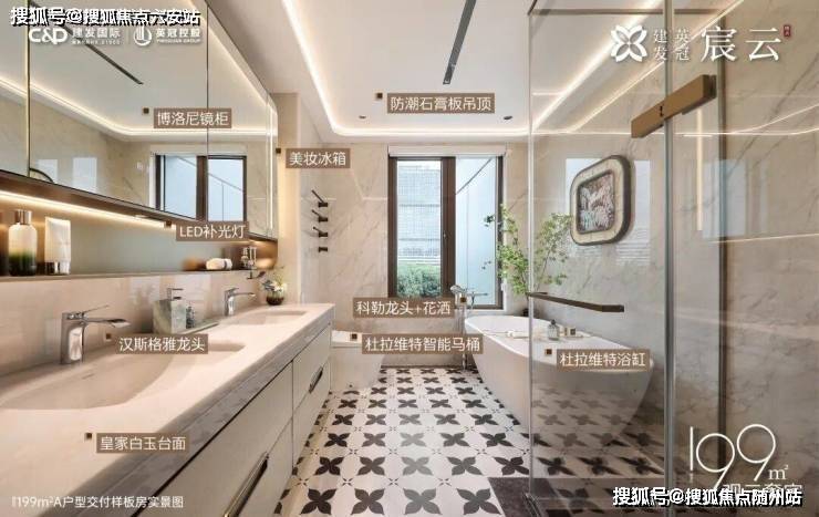 建面约199㎡户型精装风格为白金色调,选用皇家白玉、太古黑金、安第斯雪景、希腊木纹等名贵奢石,巧妙搭配在地面和墙面空间。配置大金中央空调、霍尼韦尔新风、菲斯曼地暖三大件,以及博世、方太、汉斯格雅、杜拉维特等品牌。