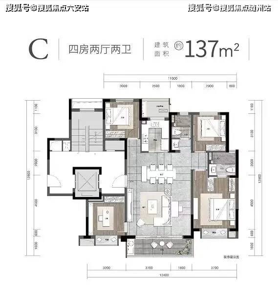 · 137㎡洋房户型:四开间朝南,层高约4.79米,部分房源可打造为复式结构,兼顾功能性与舒适度。