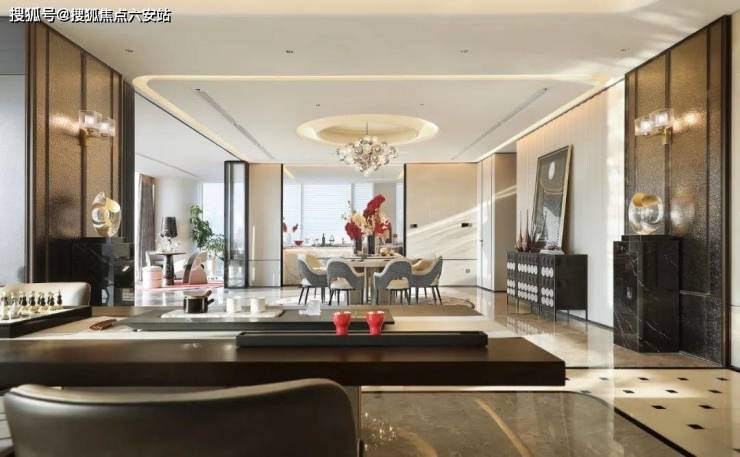 在空间设计上,湾流800颠覆了传统大平层的概念。项目采用“一层一户、一层一景”的设计理念,每户均享有独立的电梯厅和入户空间,私密性达到全新高度。标准层高约3.8米,远超普通住宅的3.2-3.4米,创造出开阔通透的室内空间感。