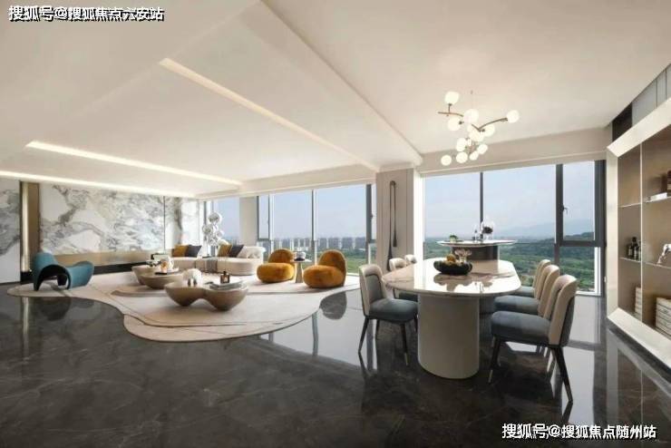 项目采用原生300㎡户型结构体系,在空间功能布局层面实现精准化设计:南向配置约100㎡开放式社交厅及50㎡主卧套间系统,依托三面采光布局形成270°全景视野界面。其中核心会客区配置9.6米连续观景面,结合双层low-E玻璃幕墙系统,实现建筑与自然的无界对话。