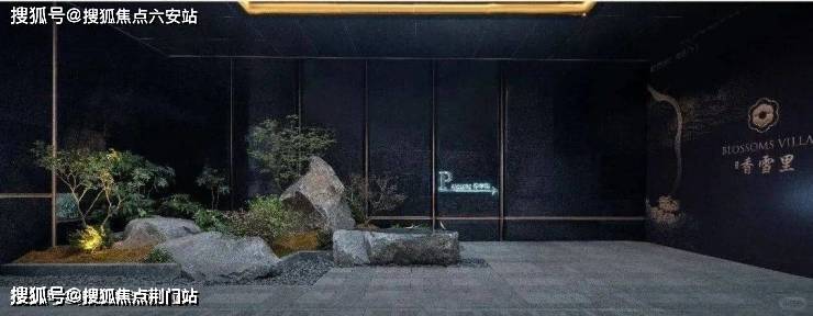 而对景墙则以亚马逊绿奢石打造,中央巧妙镶嵌金石,刻画出项目Logo,并镌刻“香雪里”之名,以及超山特有的六瓣梅花图腾,形成一道视觉上令人赞叹的风景线。